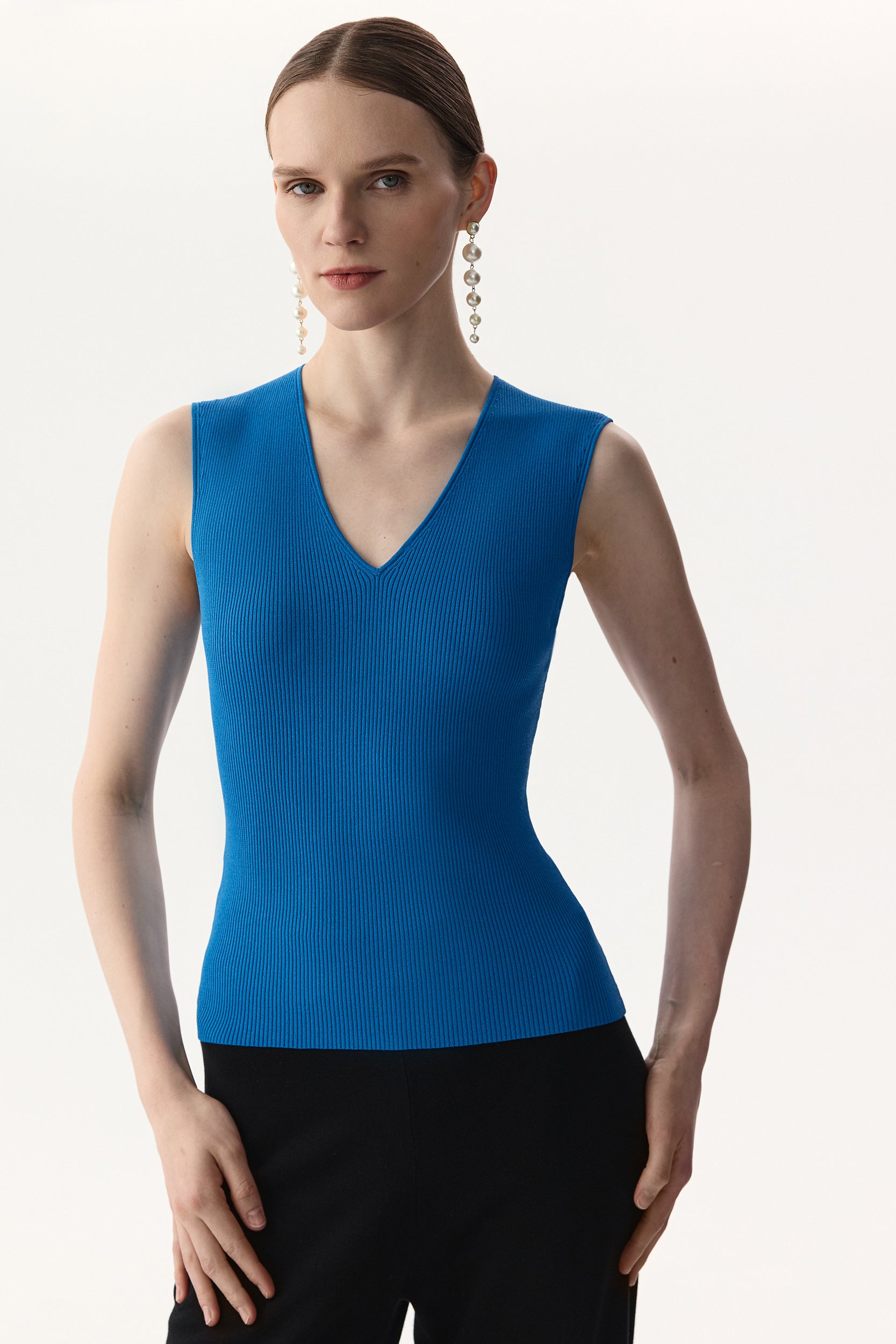 Haut en maille à col en V