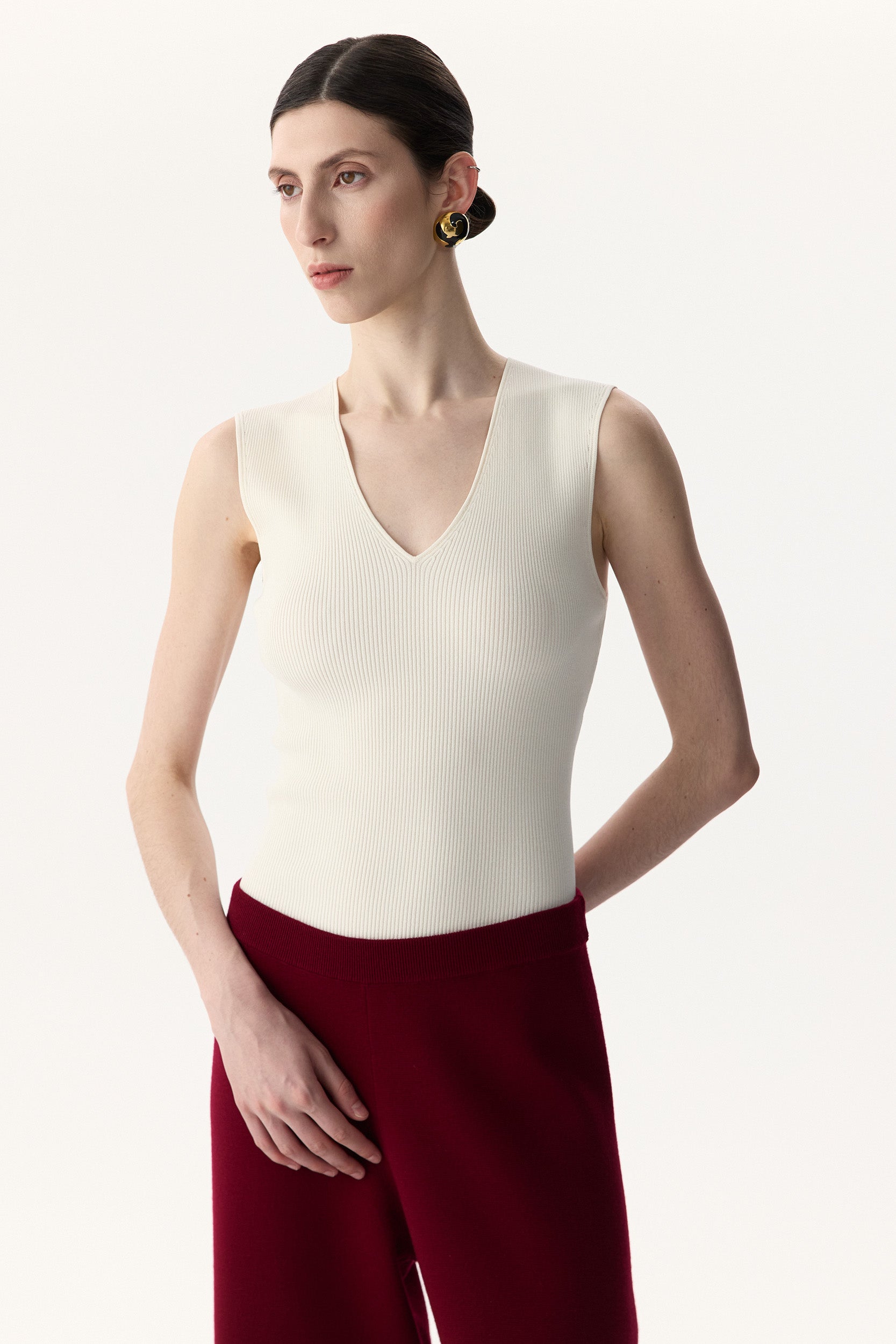 Haut en maille à col en V