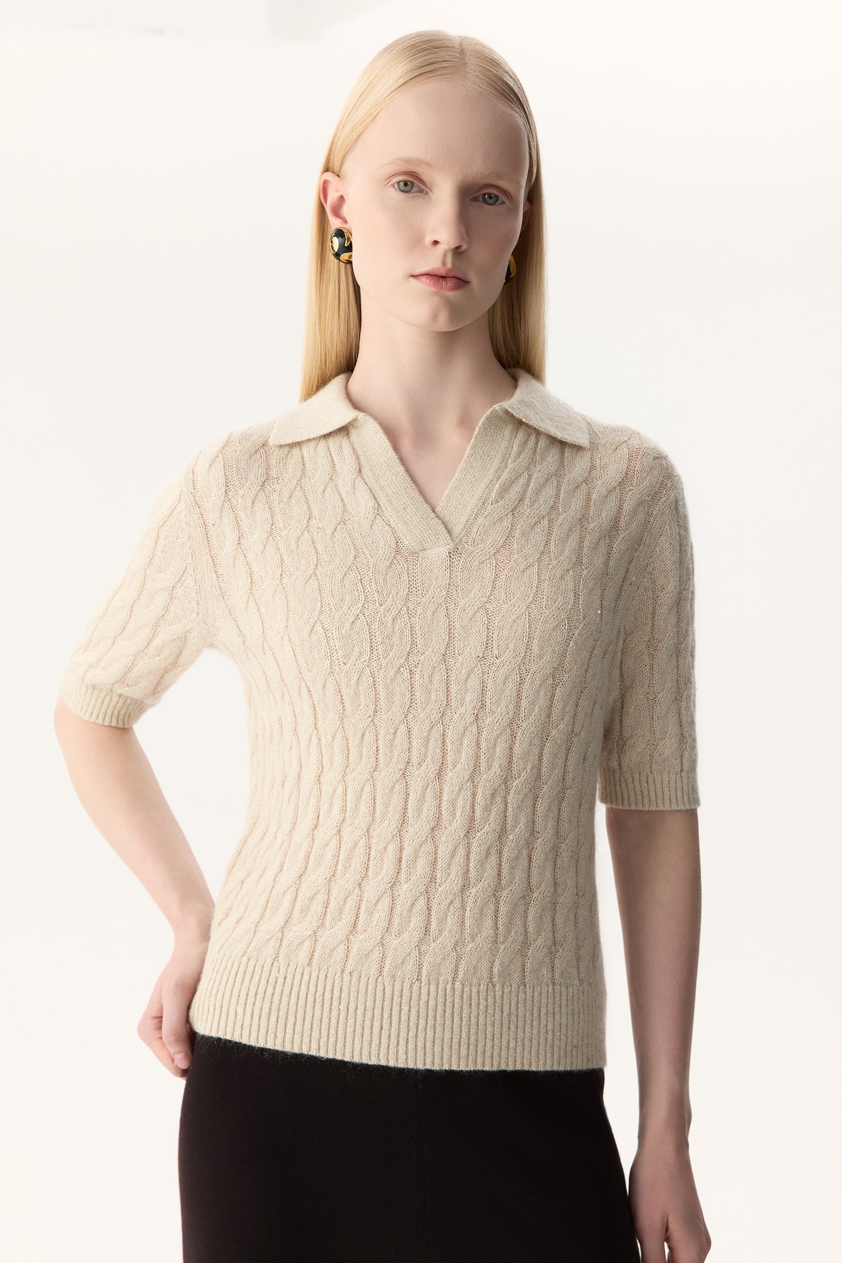 Polo shirt in mohair and silk Light beige PINXIT S Polo shirt in mohair and silk Light beige PINXIT S